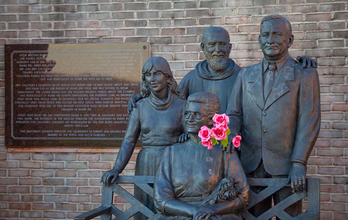 A special statue honoring the work of our founders, Vera and Harry Calandra, and their daughter Vera Marie, serves as a place for visitors to thank these individuals and learn more about their powerful faith.