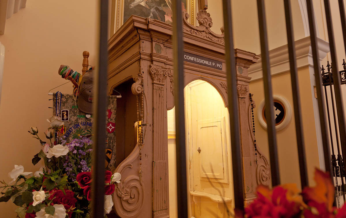 An authentic confessional used by Padre Pio to hear confessions, give counsel, and provide absolution during his lifetime, this sacred stall is located in Our Lady of Grace Chapel.