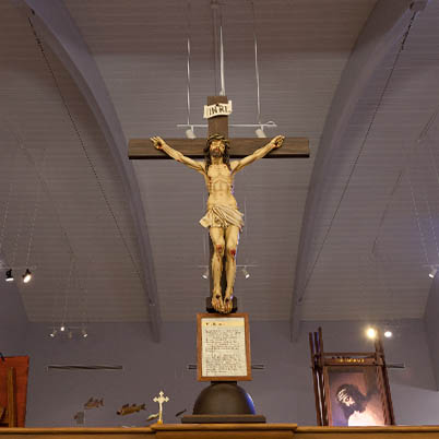 An elegant choir loft (not pictured) overlooks Our Lady of Grace Chapel, creating an atmosphere which is both intimate and sacred, replicating the place where Padre Pio received the five visible wounds of Christ crucified in 1918. The choir loft is framed by spacious domes and arches, and a stunning crucifix rises from the center of its banister. Unlike the original in San Giovanni Rotondo, this one is turned towards the interior of the chapel, so that visitors may gaze upon this replica of the crucifix in front of which Padre Pio was kneeling when he received the visible stigmata.
