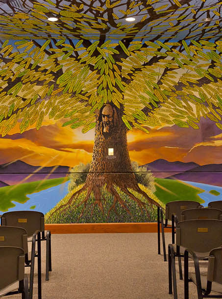 Lucia’s vision of the “Tree of Padre Pio” has been recreated in the new Saint Pio Museum in Barto, PA. The Perpetual Wall of Names shows the branches of Padre Pio ‘s Tree spread far and wide around the museum. The names of Padre Pio’s devotees and spiritual children (living and deceased), whose generosity and love are making the museum possible, are inscribed on the leaves and reside in the shade of its branches. Encased in the trunk of Saint Pio’s Tree is a piece of the Tree of the Stigmata from the Forgione Family farm in Piana Romana (Pietrelcina), where Padre Pio was marked with the invisible wounds. Each name that is added strengthens this tree; enables the mission of the museum; and assures the promise of Saint Pio to “stand at the gates of Heaven until all my spiritual children have entered.” Let us not forget that Saint Pio’s promise is the Will of Jesus as revealed in 1906.
